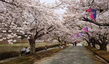 春には満開の桜並木が見られる桜の名所です。花見を仮想体験できます。